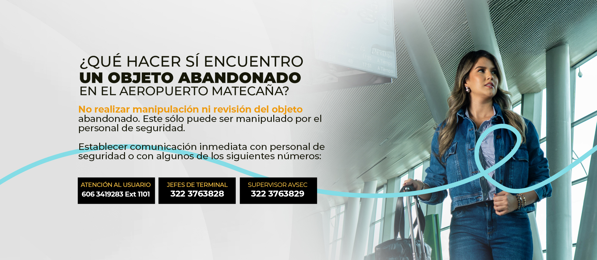 *No dejes tus maletas olvidadas* El Aeropuerto Internacional Matecaña les recomienda el cuidado de sus objetos personales y equipaje.